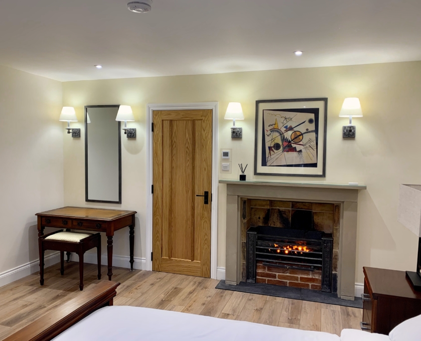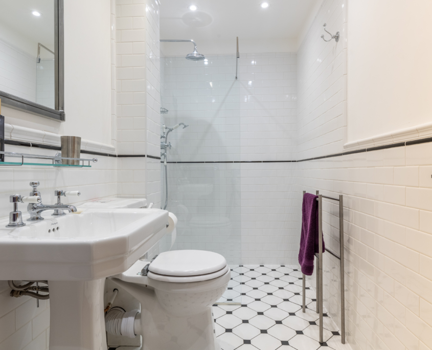 • 2 Bedrooms: Principal bedroom on the ground floor, with kingsize bed and fireplace, and Twin bedroom on the top floor, with two single beds. Both have ensuite bathrooms with showers.